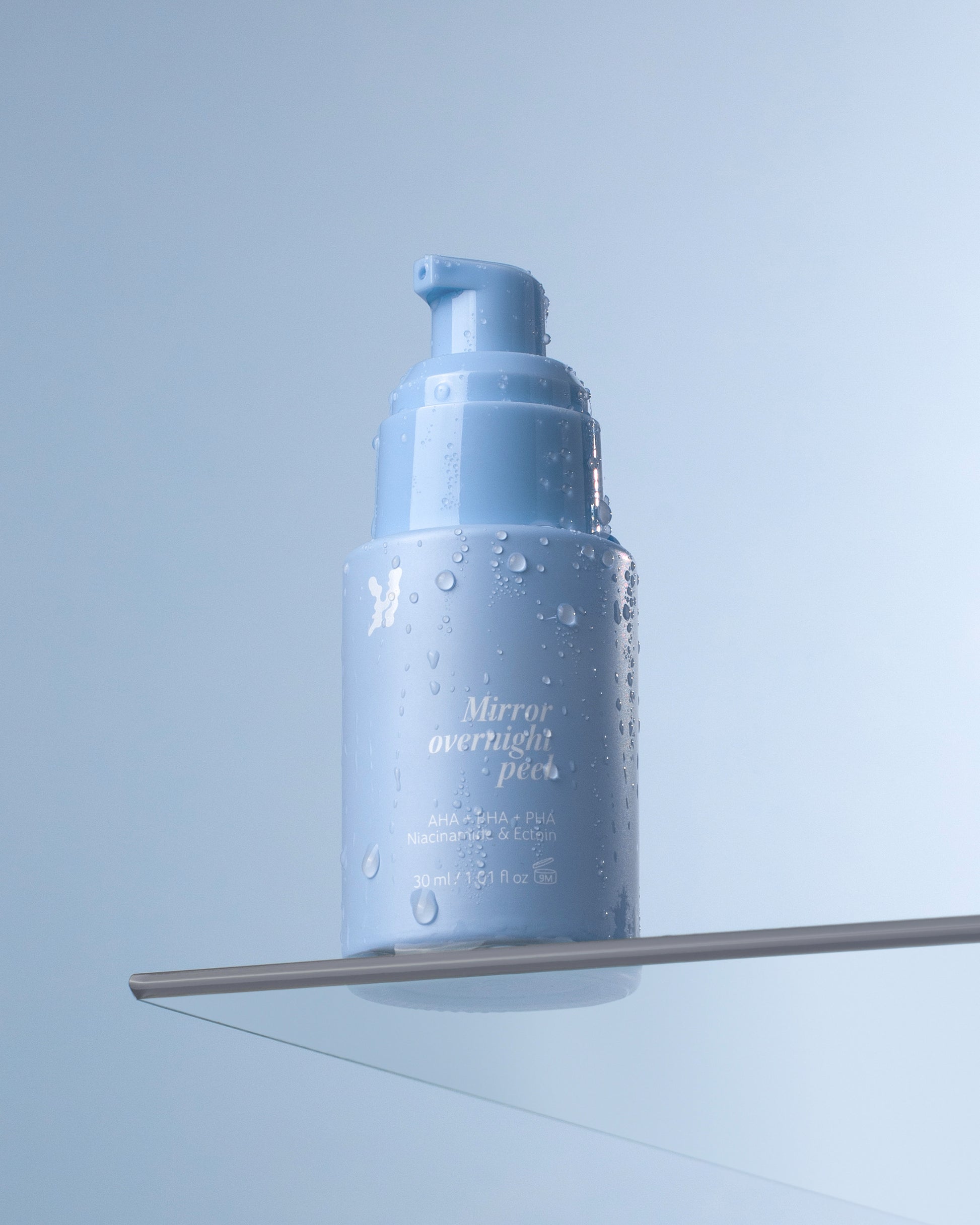 Mirror overnight peel містить потужну концентрацію кислот у складі, а також комбінацію різних кислот. Тому, бажано, використовувати його як єдиний засіб з кислотами в рутині.